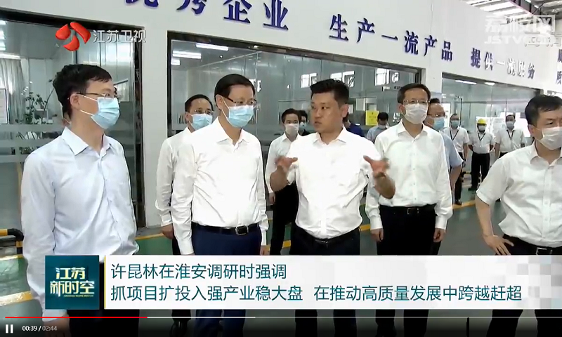 2019年10月16日下午,江苏省工信厅李强副厅长在淮阴区副区长蔡昀、淮安市工信局局长沙杰、淮阴区经信委主任李宏等市、区领导的陪同下
